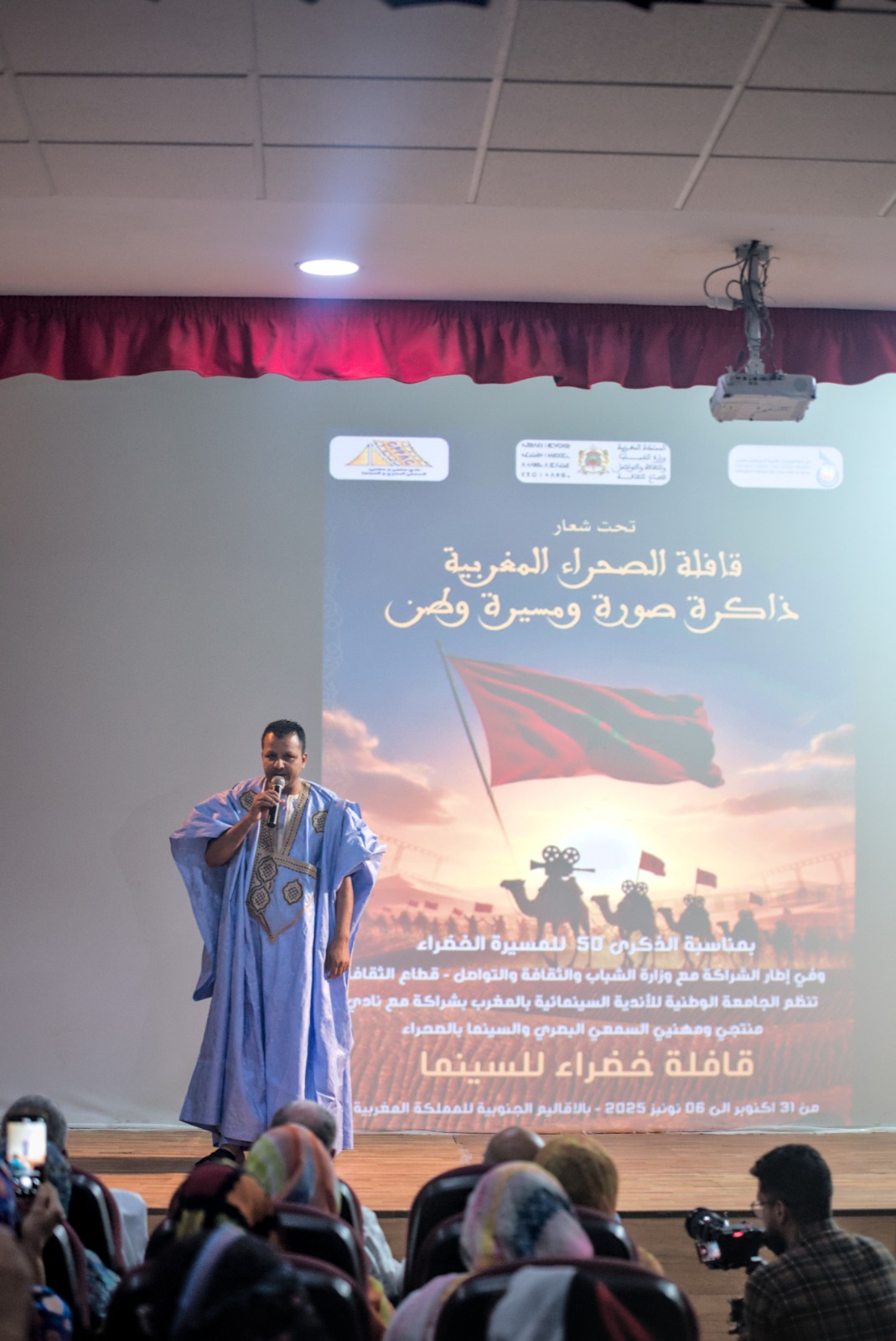 احتفاءً بالذكرى الخمسين للمسيرة الخضراء المظفرة، انطلقت من مدينة العيون فعاليات القافلة الوطنية للسينما تحت شعار “قافلة الصحراء المغربية.. ذاكرة، صورة، ومسيرة وطن”، في مبادرة فنية وثقافية تعكس روح الانتماء والوحدة الوطنية.